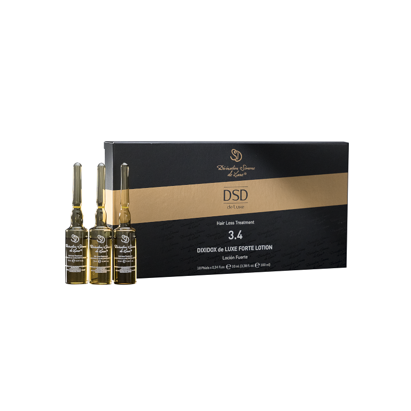 DIXIDOX DE LUXE FORTE LOTION ajuda a reduzir a queda do cabelo e a promover o seu crescimento. Contém bases purinas e pirimidinas (bases nitrogenadas que fazem parte dos ácidos nucleicos), cafeína, extrato de placenta, agentes vasodilatadores, fito-estrogénios, vitaminas e oligoelementos. Também contém extrato de Sabal com excelente atividade para interromper a queda de cabelo. Obtém-se cabelos mais fortes, densos e volumosos.